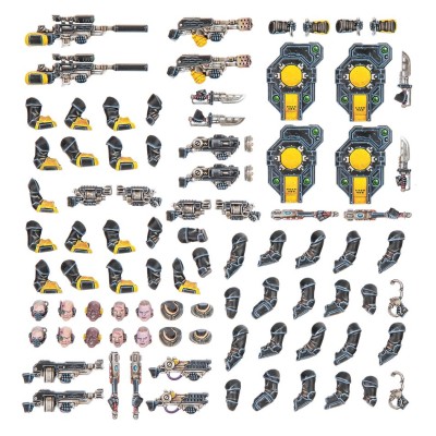 This multipart plastic kit includes a selection of weapons and upgrades for your Palanite Enforcer gangs in games of Necromunda. With deadly specialised weaponry and equipment, you'll be ready for everything the underhive and ash wastes have to throw at you. Also included in this kit are alternative heads to personalise your fighters even further.