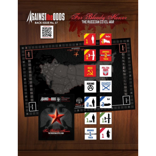 Against the Odds lets you explore the tangled facets of the Russian Civil War, with the historical situation exemplified by a game that handles two to four players…with up to three of them commanding the “White” Russian factions! For Bloody Honor: Civil War Russkaya captures the interactions of political influence, railways, foreign intervention, and the discord among the White factions that gave the Bolsheviks their best chance to win in a battle against — as it seemed to them — their internal enemies and the whole Western Alliance. For Bloody Honor includes 10 game turns, each representing 4 months of real time from the end of 1918 to the end of 1921, and driven by chit pull which will guarantee no two turns are alike.