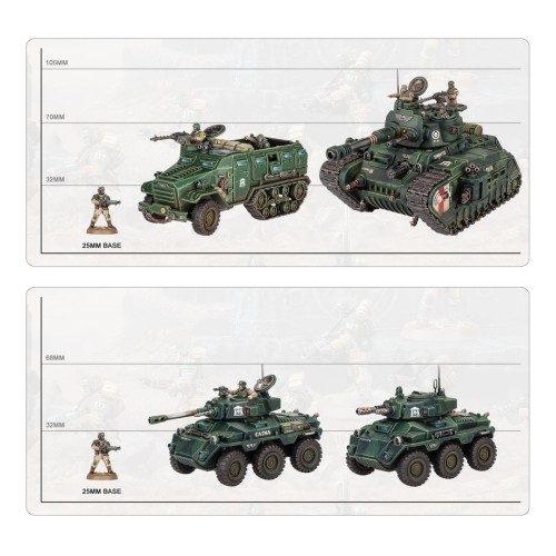 REF: 47-47The rattle of tanks and tracks, and the hammering of gunfire, herald the advance of an Astra Militarum armoured infantry division. These forces are well-suited to aggressively seizing strategic objectives, reinforcing buckling lines, responding to enemy attacks, and capitalising on strategic gains.