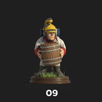 Figura impresa en 3D , curada y lista para pintar . Las figuras requieren pintar y algunas montar