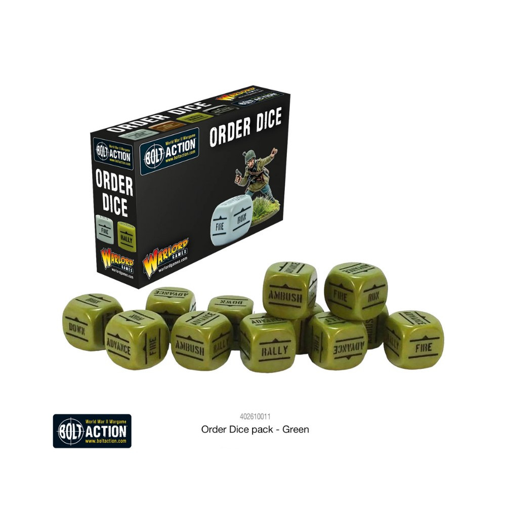 Bolt Action utilises a random unit activation system using Order Dice. Each player will need one set of Orders Dice in a different colour to that of their opponent.