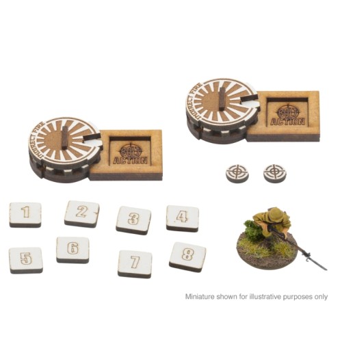 With indirect fire more prevalent than ever on the Bolt Action tabletop, you’ll want to make keep track of which of your weapons are ranging in on the enemy. These markers ensure you know who’s shooting at whom, and what they need to hit next turn, eliminating confusion and letting you mark your targets with confidence.
