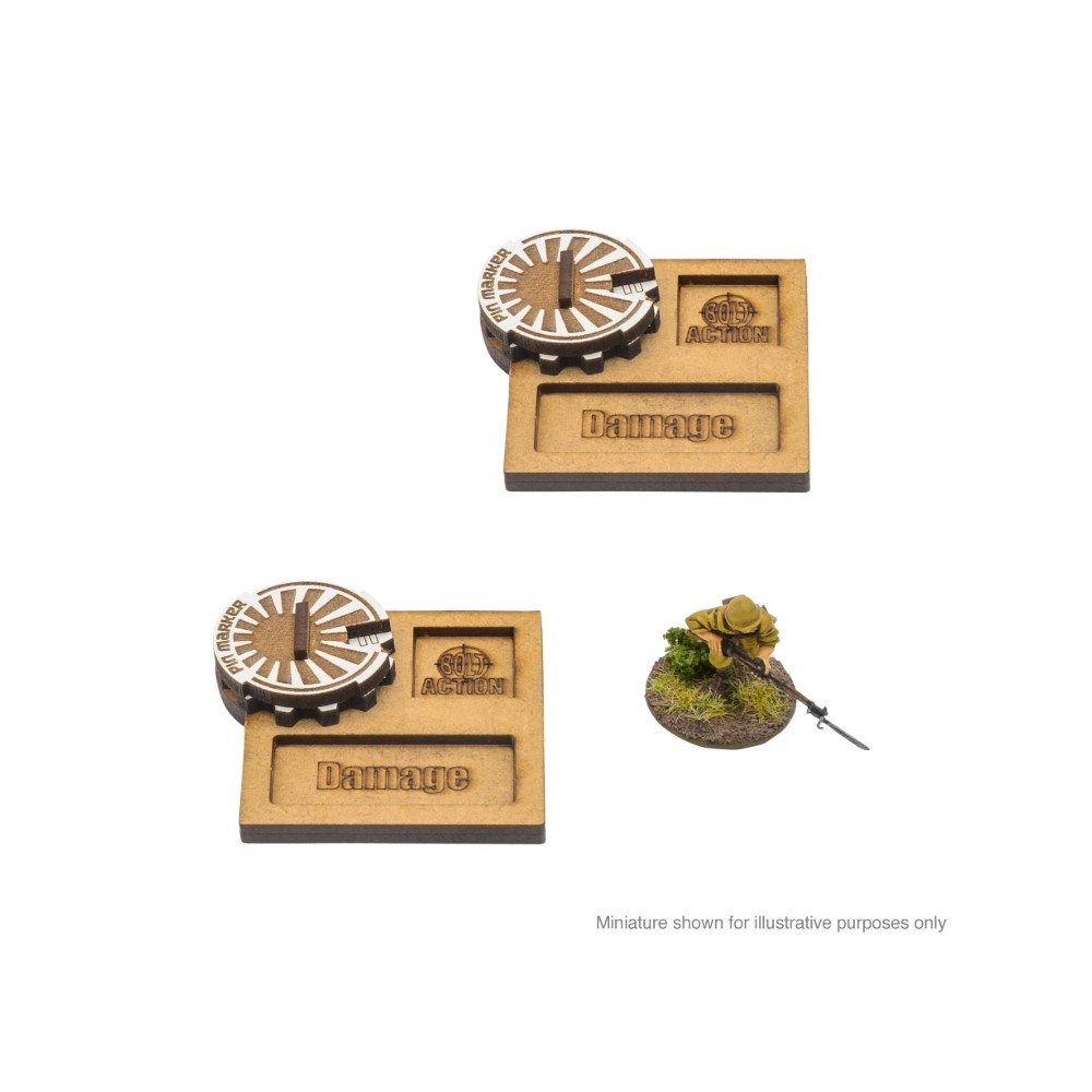Pins are a key mechanic in Bolt Action, and you need to be able to track them for all of your vehicles. Each one of these markers lets you track a vehicle’s pins, from 0 to 11, and store their Order Die and damage markers securely at the same time, leaving your table uncluttered and your units’ status clear!