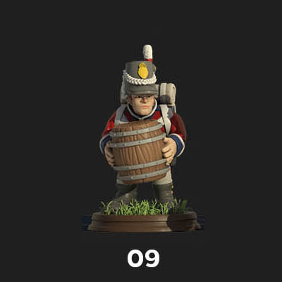 Figura impresa en 3D , curada y lista para pintar . Las figuras requieren pintar y algunas montar