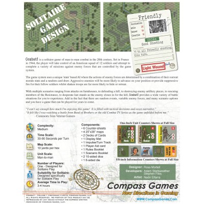 With multiple scenarios ranging from attacks on Farmhouses, to defending a hill, to destroying enemy artillery pieces, to rescuing members of the resistance, to desperate last stands as the enemy close in for the kill, Combat! provides a wide variety of battle situations for you to experience. Add in the fact that there are random events, variable enemy forces and many scenario options and you have a game that can be played for years to come.