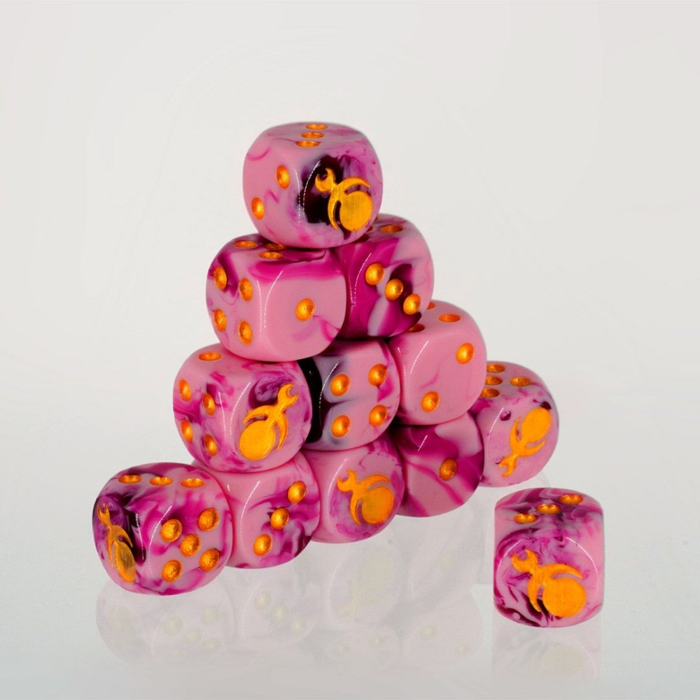 Set of 12 blue marbeled acrylic dice with gold numbers and logo to play with Ultramarines.