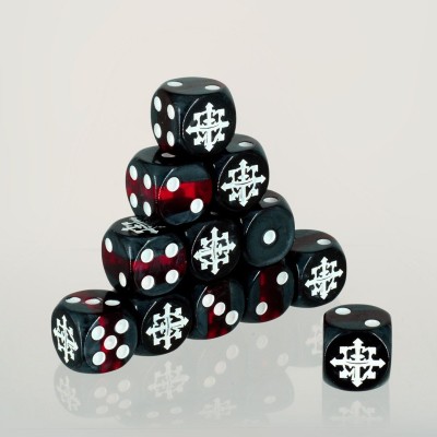 Set of 12 black counting dice with white numbers