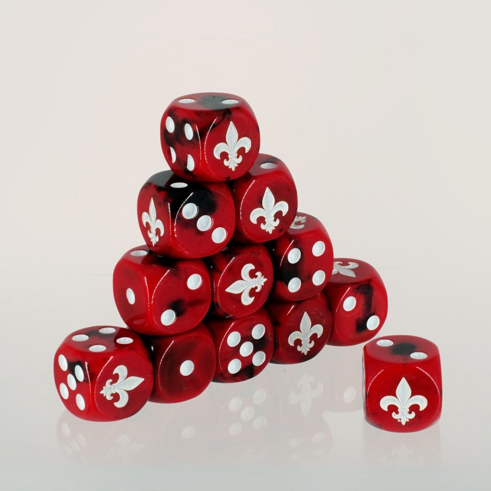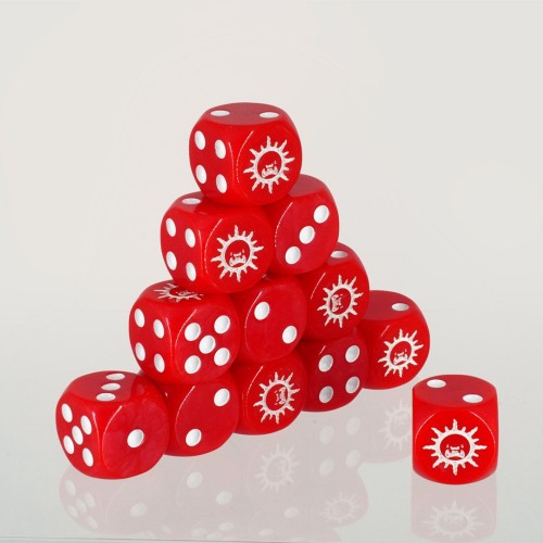 Set of 12 military green acrylic dice with white numbers and logo to play with Astra Militarum. For the Emperor!
