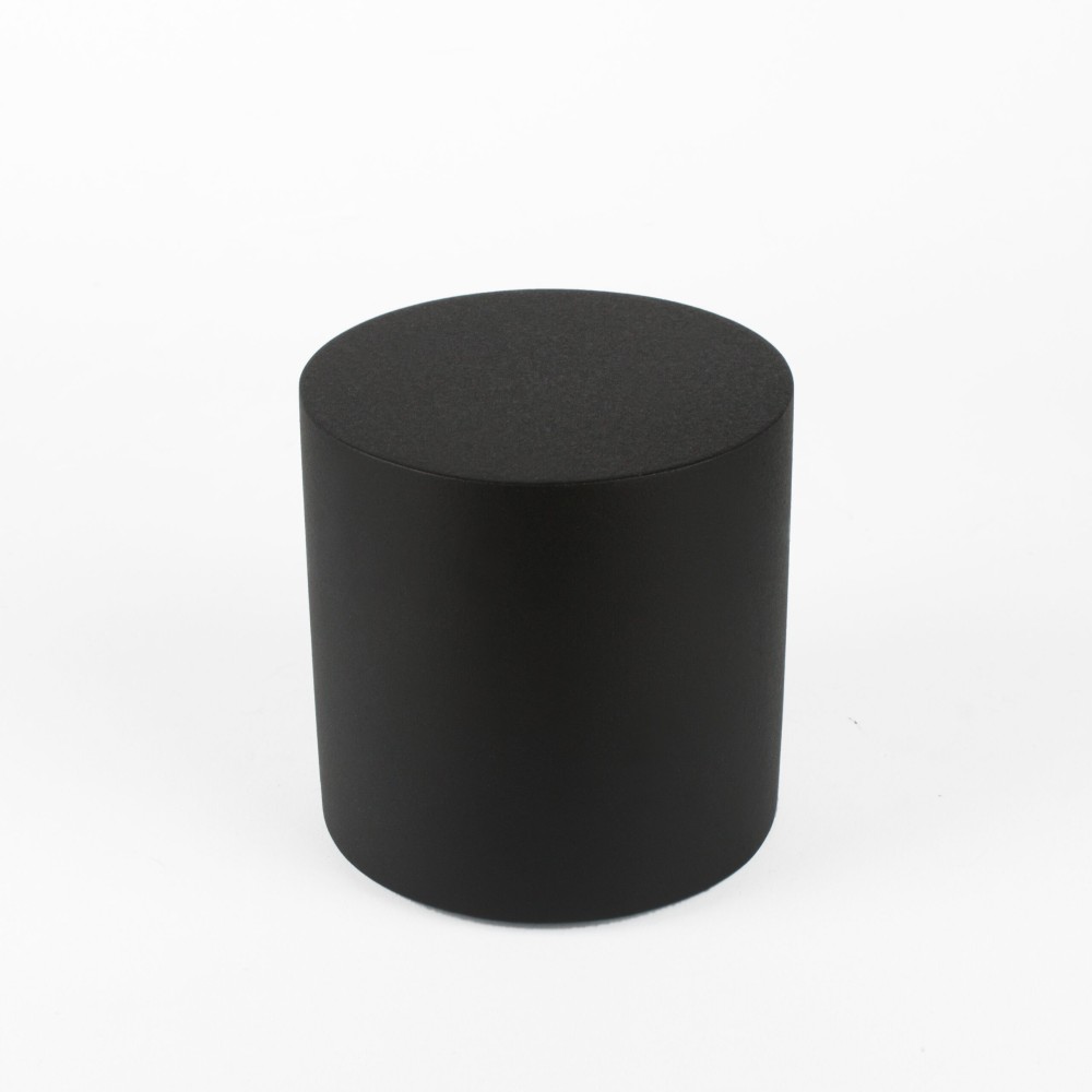 60 mm diameter MDF wooden base, 6 cm height, finished in matte black with an ultra-resistant coating.