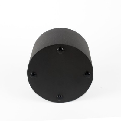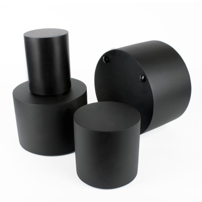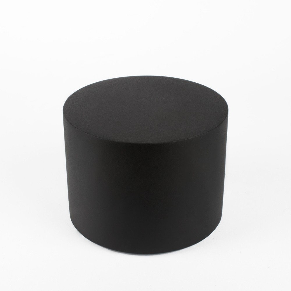 80 mm diameter MDF wooden base, 6 cm height, finished in matte black with an ultra-resistant coating.
