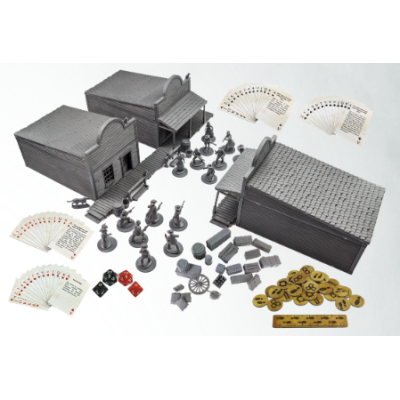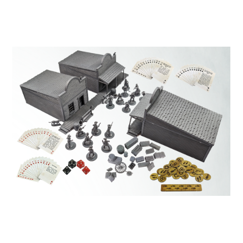 Dead Man’s Hand Rulebook, card markers, dice and deck.