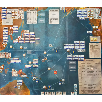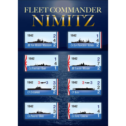 Fleet commander Nimitz is a solitary game from DVG Games. This game spans the entire Pacific war from January 1942 until the end in September 1945. Success depends on the vital balance between strategic and tactical focus. You must move your forces across the maps to achieve your strategic goals, but you must also out-think your opponents on the battlefield. You can play each campaign as a stand-alone game, or as part of a linked series of games. Each campaign has its own unique set of force counters that accurately detail the ships, air groups, and army units that participated in the war.