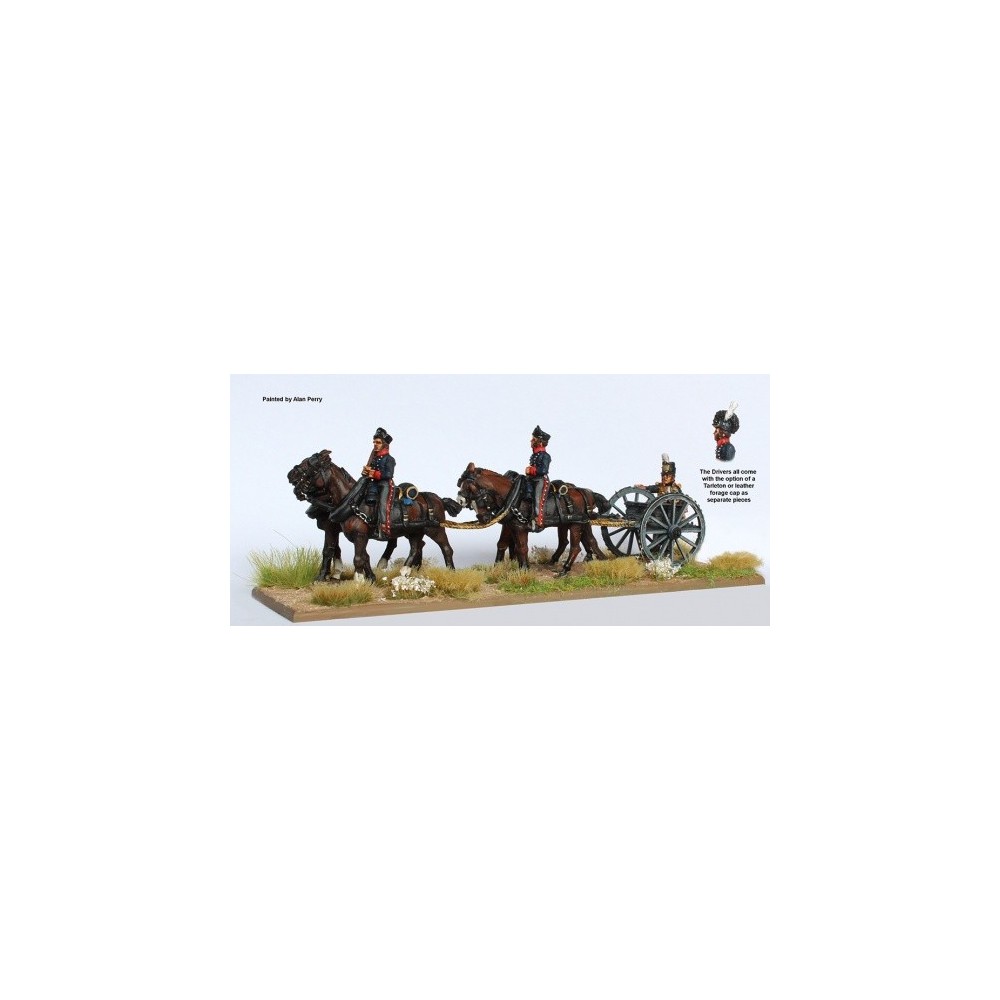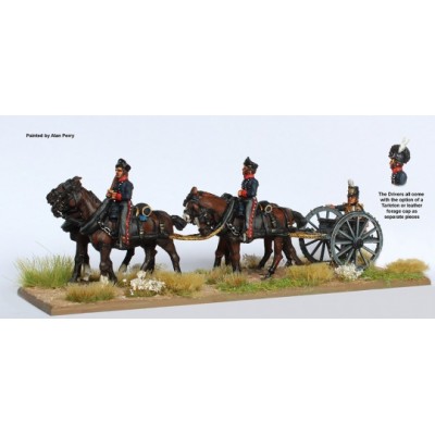 Royal Foot Artillery 4 horse limber (no gun) standing, drivers in Tarletons and fatigue caps. Peninsular War
