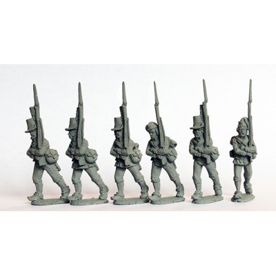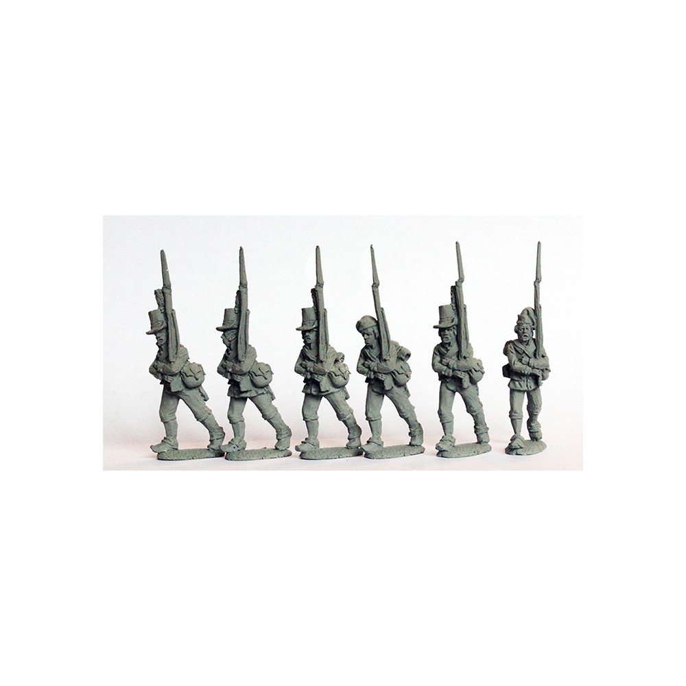 Musketeers in round hats marching 1803-08