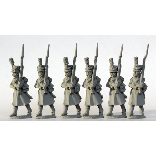 Grenadiers marching shakos with bearskin plates greatcoats 1812-14