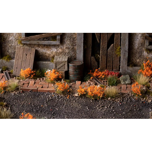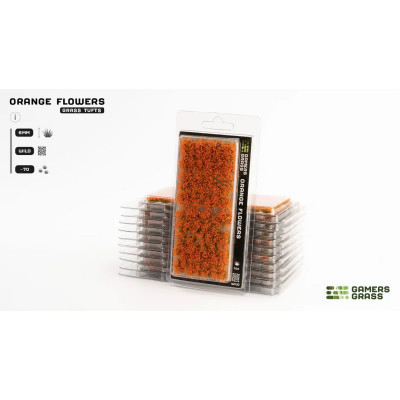REF: GGF-ORTufts covered with orange petals. Used to simulate garden roses, lantanas, marigolds, tulips, lilies, chrysanths, geraniums, dahlias, gerberas, hibiscus. Also wild plants like calendulas or hawkweeds can be recreated. Alone or mixed with other tufts, they will bring vivid colours to your bases and dioramas. This sheet contains around 70 different shaped and sized tufts for your scale models, hobby figures and scenic dioramas.