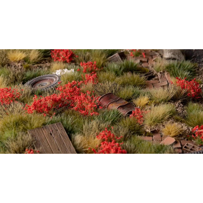 REF: GGF-REDTufts covered with red petals. Used to simulate roses, carnations, camellias, geraniums, dahlias, gerberas, azaleas, poppies. Also used to recreate bushes with ripe red fruits like bearberries, lentiscs, hawthorns, cotoneasters. Your bases and dioramas will become surprisingly charming. This sheet contains around 70 different shaped and sized tufts for your scale models, hobby figures and scenic dioramas.