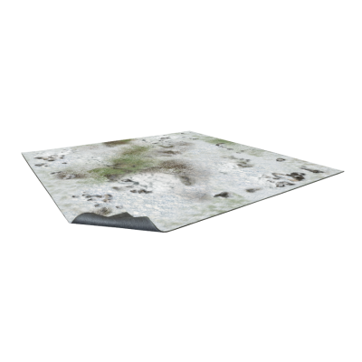 REF: BSTXX014This gaming mat depicts an icy tundra with drifts of snow and sharp rocks. It is printed in high quality on fabric with a 1mm neoprene backing. It can be combined with similar mats to make a larger battlefield and can be rolled or folded for easy storage.
