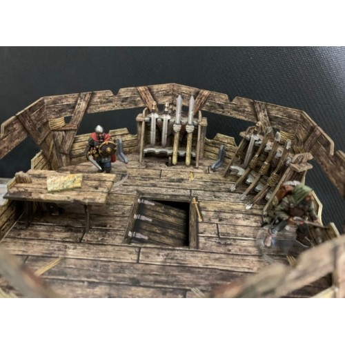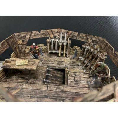 The terrain is supplied flat-packed on high-quality, high-density card, printed in full colour on both sides, so no painting required! The terrain requires assembly, and some smaller parts will require glue.