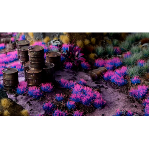 Tufts with blue and pink colours mixed together, with a very strong and baffling look. Perfect to create rather odd alien plants that nearly glow in your sci-fi, fantasy or magical bases and models. Combined with other colours and sizes they provide a perplexing colour variation to your scenes. This sheet contains around 70 different shaped and sized tufts for your scale models, hobby figures and scenic dioramas.