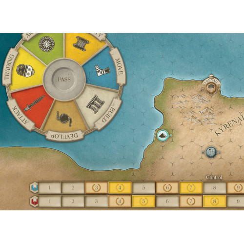 In DIES IRAE, the second installment in the “History of the Ancient Seas” game series, you will lead one of the great Empires like: The Greek City States, Egypt or Persia and fight for dominancy in the eastern part of the Mediterranean Sea. The people from all of these empires see the Gods as their allies and trust them as supporters for their cause! DIES IRAE is originally a three player game! game but the the “Archimedes” Solitaire bot and the “The King is dead” static empires feature allow you to reduce the player count if needed. War or peace: That is your decision!