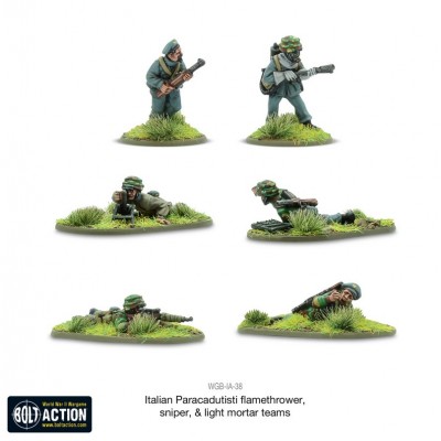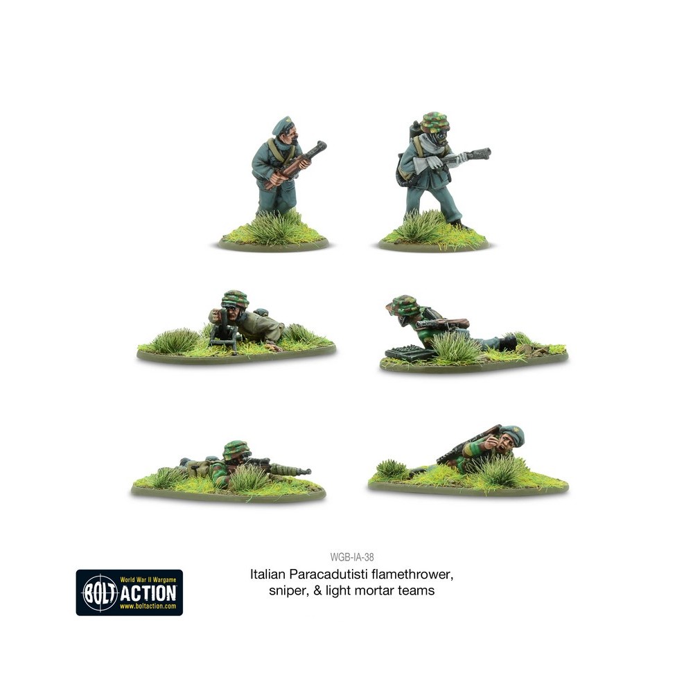 Italian Paracadutisti flamethrower, sniper & light mortar teams