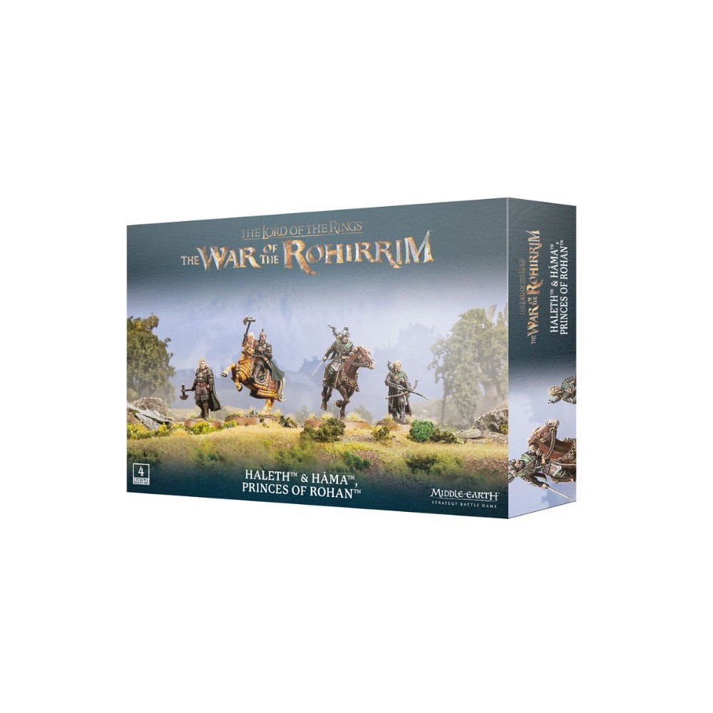 REF: 30-89This multipart plastic kit builds both Haleth & Háma, on foot and mounted, as skillful leaders for an Army of Edoras force. All four miniatures have multiple head options with choices between helmeted and unhelmeted. Both versions of Haleth may be built with either a sword, spear, or axe, and with various options for a sheathed or unsheathed sword, making it easy to customise your pair of princes.