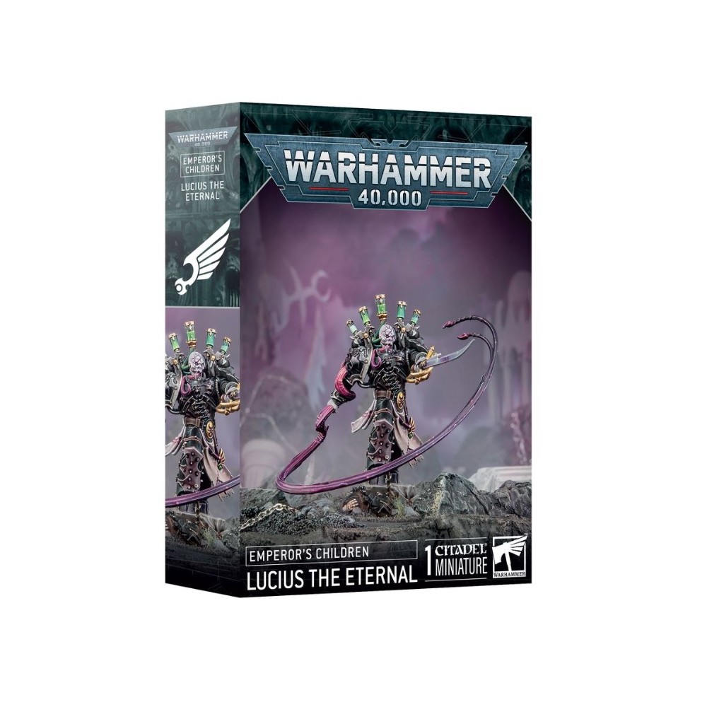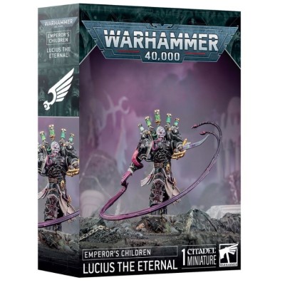 This multipart plastic kit builds Lucius the Eternal, a legendary duelist for your Emperor's Children armies in games of Warhammer 40,000. He wields the daemonic Blade of the Laer in one hand, and the Lash of Torment in the other, utterly devastating in both single combat and in taking on hordes of lesser foes. If you crave the exhilaration of close-quarters combat, Lucius is an ideal leader for your force.