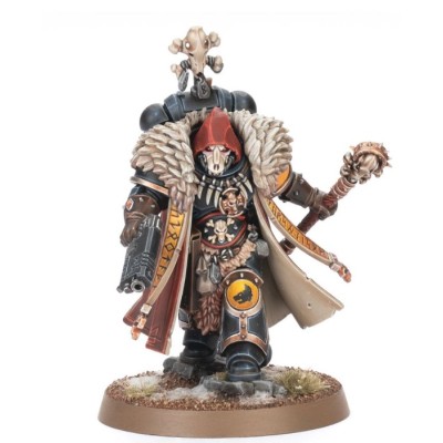 REF: 53-32Wolf Priests are elder sages who tend to the spiritual and physical well‑being of their battle‑brothers. Clad in black, bedecked with shamanistic totems and wearing macabre wolf‑skull helms, they are terrifying to behold.