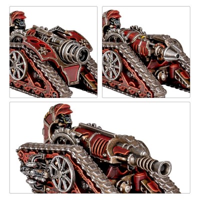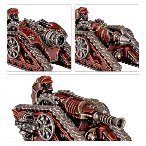 The Mechanicum employs a wide variety of units to execute their wars, including cybernetically enhanced thralls and automata, as well as bizarre, esoteric tanks of an unusual design. Their mastery of arcane technology allows them to field weapons that can't be found elsewhere, and their mechanical constructs are incredibly hard to take down.