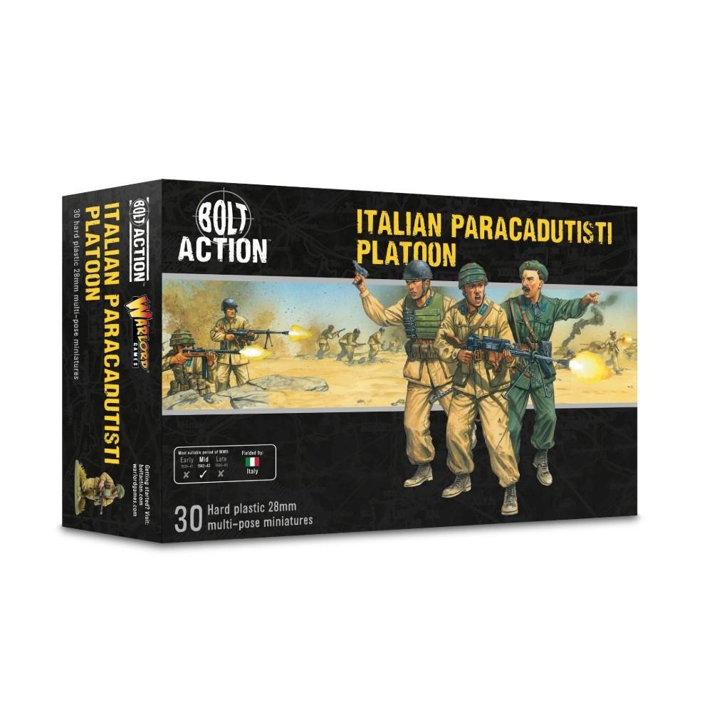 This box contains 30 infantry models in M41 paratrooper uniforms, allowing you to build a huge variety of Paracadutisti infantry units and weapons teams.