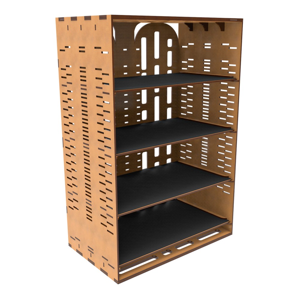 Extra Cabinet is designed to complement the transport and storage of miniatures. It can be used both as an additional cabinet for the GSW Army Transport Bag and as a free-standing stackable storage system. Manufactured of MDF wood is capable of accommodating more than 200 miniatures distributed among its rack levels.