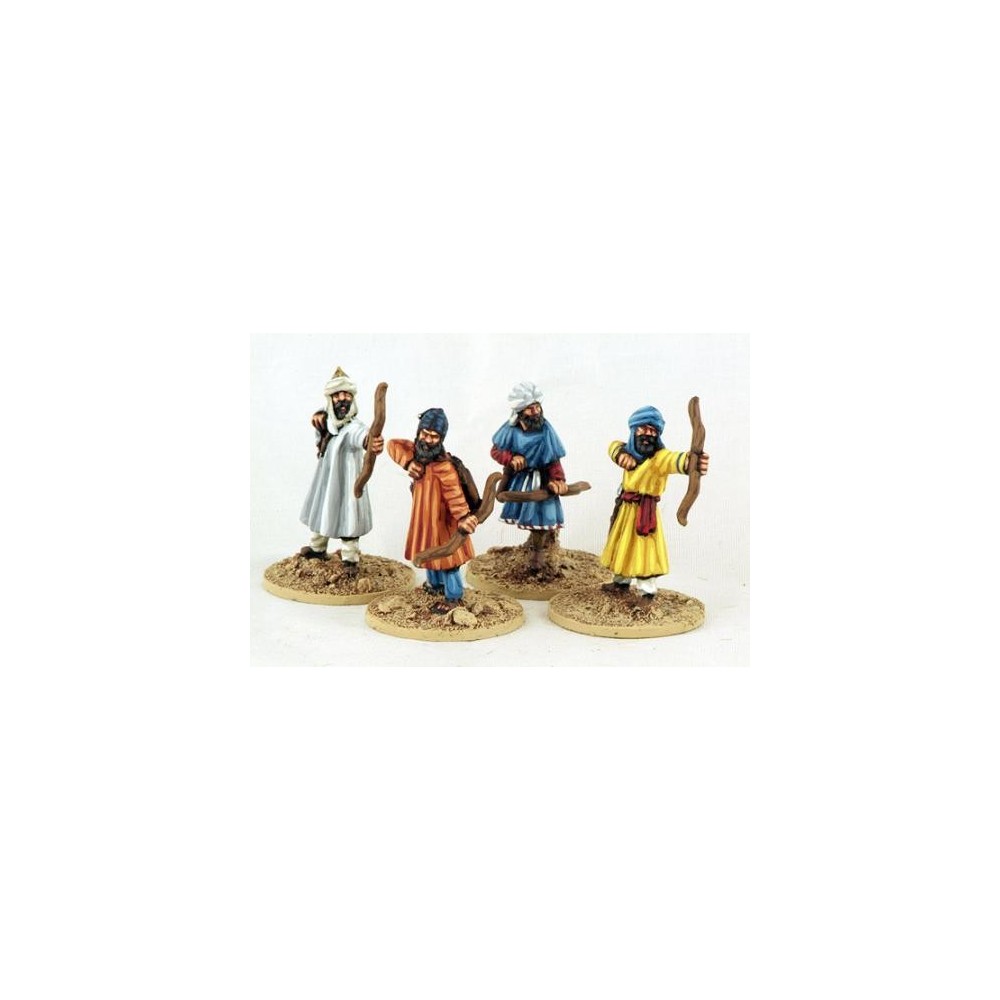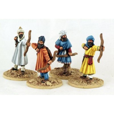 4 28mm metal figures from a command group from the range of Moors of the Reconquest, with a musician, a standard-bearer and two bosses.