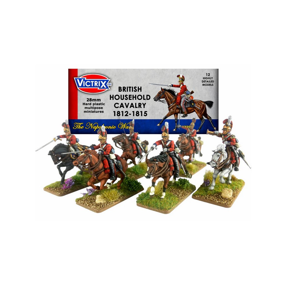 REF: VX0025This highly detailed set from Victrix has multiple head and arm options to make a varied and dynamic unit of charging British Household Cavalry, including a command frame with trumpeter and Officer. These can represent the Royal Horse Guards (wearing a blue uniform) and the 1st and 2nd Life Guards (wearing a red uniform). As well as fighting in the Peninsula war they were heavily engaged during the Waterloo campaign in 1815. They helped screen the armies withdrawal from Quatra Bras and suffered many casualties as part of Lord Somersets Brigade at Waterloo itself (losing 320 men out of 696)