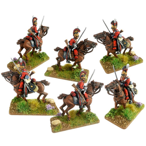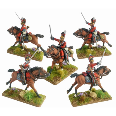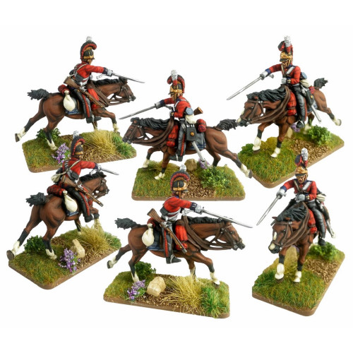 This highly detailed set from Victrix has multiple head and arm options to make a varied and dynamic unit of charging British Household Cavalry, including a command frame with trumpeter and Officer. These can represent the Royal Horse Guards (wearing a blue uniform) and the 1st and 2nd Life Guards (wearing a red uniform). As well as fighting in the Peninsula war they were heavily engaged during the Waterloo campaign in 1815. They helped screen the armies withdrawal from Quatra Bras and suffered many casualties as part of Lord Somersets Brigade at Waterloo itself (losing 320 men out of 696)