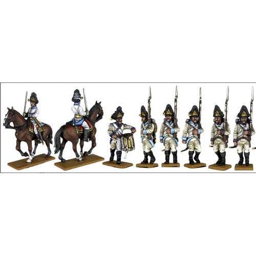 This set includes 12 dynamic charging French Chasseurs a cheval of the Imperial Guard, one of Napoleons Elite light cavalry Regiments. The set...