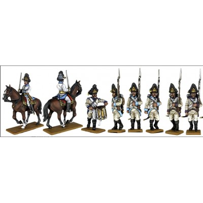 This set includes 58 highly detailed figures. These figures represent the Bavarian infantry from 1809, when they adopted more of a French style kit...