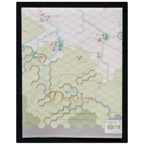 The Battle for Dresden, 1813 is a brigade level, two-player simulation depicting the two days of battle in and around the city of Dresden during Napoleon's 1813 campaign in Germany. One player controls the French forces, while the other player controls the combined Austrian, Russian and Prussian forces. The playing pieces denote the actual military formations available during the battle. The game map is a representation of the area in which those formations fought. Each player, through a structured sequence of play, maneuvers his units on the map and engages adjacent enemy units in combat