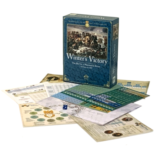 Winter's Victory is a grand tactical, battalion level simulation of the battle of Preussisch-Eylau that occurred on February 7th and 8th in 1807 in West Prussia (modern day Poland and Russia). It pits the Emperor Napoleon's Grande Armee against the Army of Imperial Russia under General Count von Bennigsen. This epic winter struggle was one of the bloodiest battles of the Napoleonic era. The four map full day scenario recreates the bloody battle of the 8th, covering the entire field from the approches to the town of Eylau to the massive Russian grand batteries guarding the high ground beyond. The game system uses an asymmetric sequence of play and alternating fire combat. Most units are Infantry battalions, cavalry regiments and artillery batteries.
