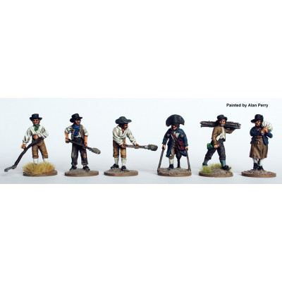 Labourers and veteran... Napoleonic civilians. Special pack of Napoleonic figures from Perry Miniatures, in 28mm and made of metal. Figures are supplied disassembled and unpainted, paint and glue not included