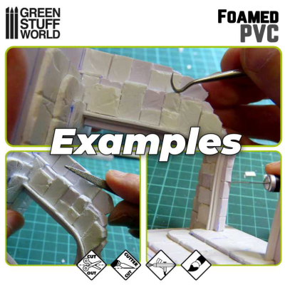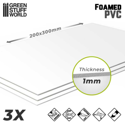 Foamed PVC (or Forex) is the very basic scratch material for all diorama scratch builds. This is a lightweight closed-cell PVC-free foam sheet. It has an exceptionally fine and homogeneous cell structure and a satiny surface. Despite their very light weight the sheets are extremely sturdy, impact-resistant, lightfast, weather-resistant, flame-resistant, and self-extinguishing, and can be painted, varnished, nailed, screwed, riveted, and glued.