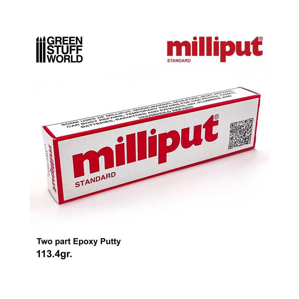 REF: 5035167000490ESMilliput Standard is a versatile and popular epoxy putty used by modelers, sculptors, and crafters for a variety of applications. It is a two-part putty composed of two separate sticks, one containing a hardener and the other a resin. Mixing equal parts of both sticks initiates a chemical reaction that gradually hardens the material into a strong, durable, and resilient mass in about 90 minutes.