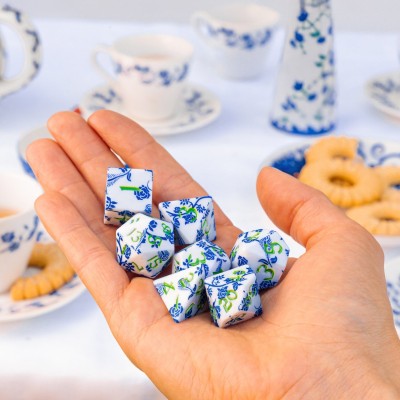 Inside the set, you’ll find 7 polyhedral dice of unparalleled quality. Balanced, durable, and eye-catching, they’re made to be rolled often and admired always. Whether you’re a player, collector, or simply a lover of beauty, these dice offer more than mechanics — they offer inspiration. For centuries, the hands of artisans have married function and beauty — you see it in porcelain, where every line of pattern carries meaning and memory. These dice draw from that same legacy: their faces bloom with delicate blue motifs.