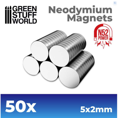 - Neodymium Magnet - 5x2mm, valid for metal miniatures bases.