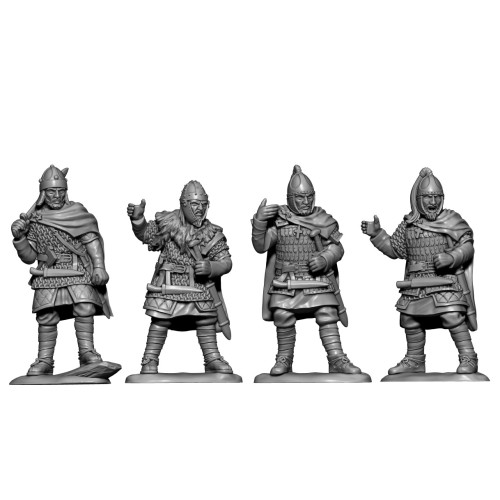 4 28mm metal figures of Visigoths 6th -8th century. This command pack contains one Warlord, two musicians and one standard bearere with one draco...