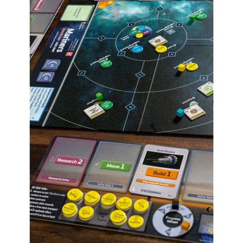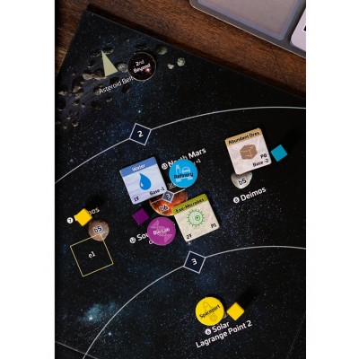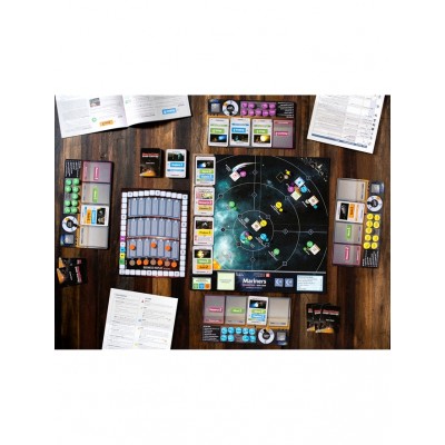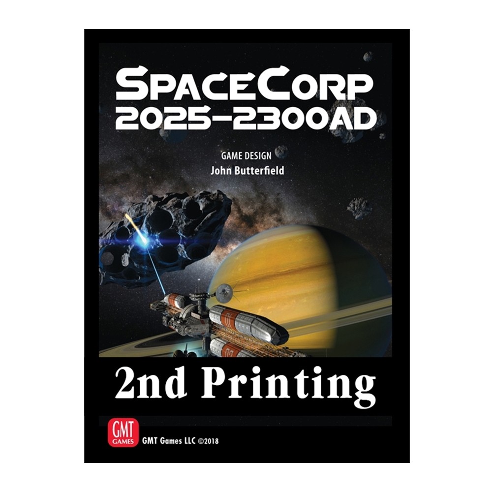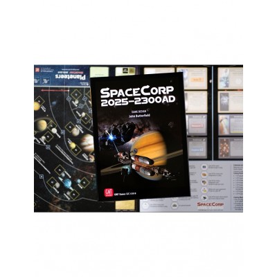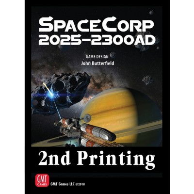 REF: GMT1812SpaceCorp: 2025-2300 AD is a fast-playing board game in which one to four players explore and develop outer space over three eras. Each player controls an Earth-based enterprise seeking profit by driving the expansion of humanity into the Solar System and beyond...Players can choose to play a short game, covering just one era, or can play the full game covering all three eras and representing three hundred years of human expansion into the cosmos. Rules and systems for a complete solitaire game covering all three eras are included.