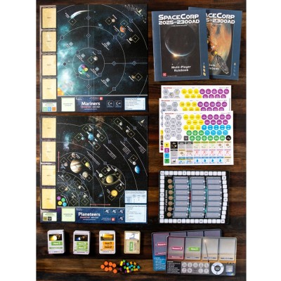 SpaceCorp: 2025-2300 AD is a fast-playing board game in which one to four players explore and develop outer space over three eras. Each player controls an Earth-based enterprise seeking profit by driving the expansion of humanity into the Solar System and beyond...Players can choose to play a short game, covering just one era, or can play the full game covering all three eras and representing three hundred years of human expansion into the cosmos. Rules and systems for a complete solitaire game covering all three eras are included.