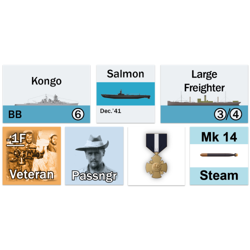 Silent Victory is a solitaire tactical level game placing you in command of an American submarine during WWII in the Pacific. Your mission is to destroy as much Japanese shipping and as many warships as possible while advancing your crew quality and decorations - all while remembering you have to make it home. The game delivers an historical narrative as 720 ship targets are uniquely identified (including tonnage) with their historical counterparts that were sunk during the war, including freighters, tankers, Japanese submarines, and warships.