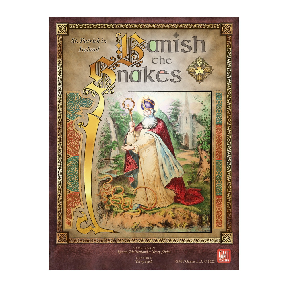 Banish the Snakes is a solitaire and/or cooperative game that simulates Ireland in the 5th century, while the Roman Empire was collapsing in the west and Ireland was turning to the Christian religion. Players represent Saints- Patrick and others (up to six of you) who set out to convert the pagans on the island. You must work as a team to convert the people of Ireland before the barbarians completely overwhelm Britain- if you fail, the Irish will not be able to save Civilization in the following centuries!