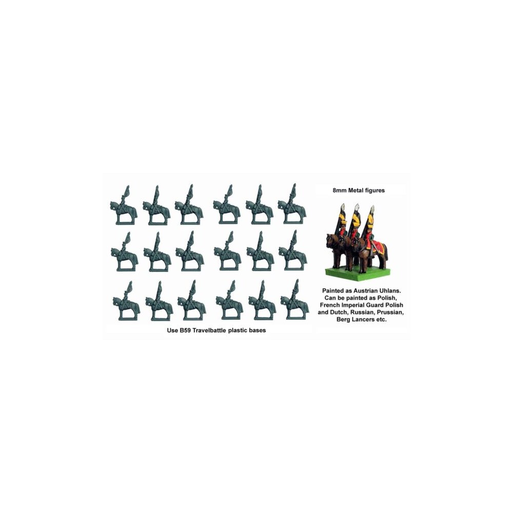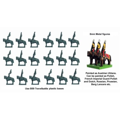18 metal figures of Napoleonic lancers in czapka for the game Travel Battles. They can be painted as Polish lancers.